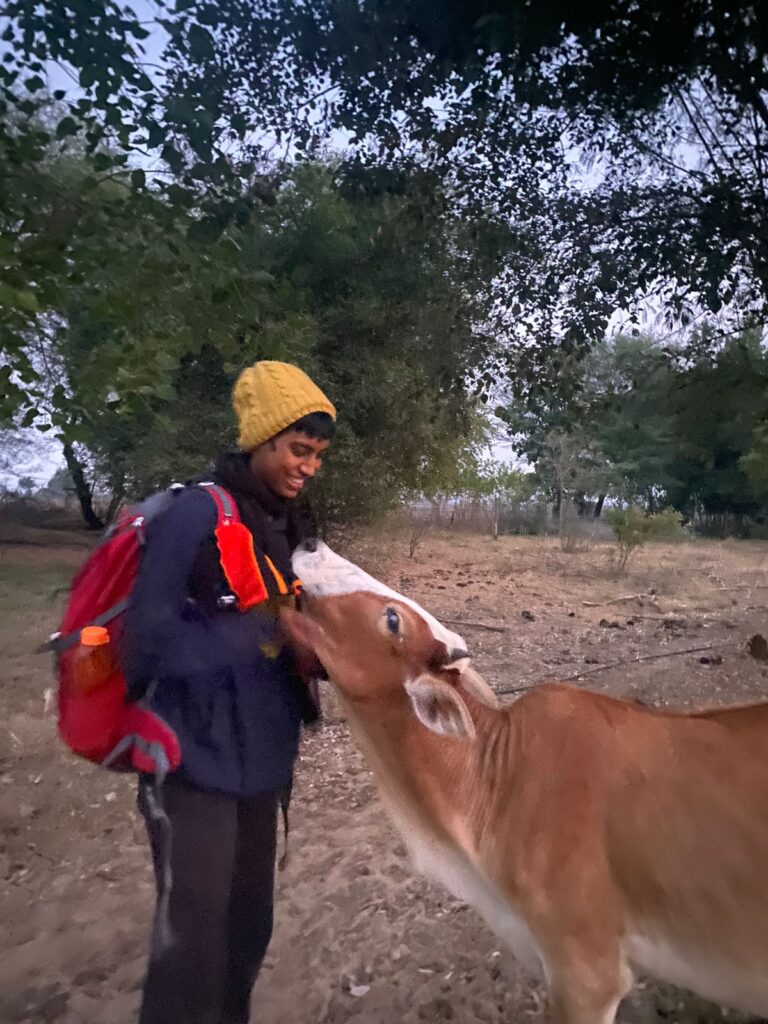 हाँ, यहाँ एक औपचारिक गौशाला है जिसका नाम ‘गोपाल कृष्ण गौशाला’ है, जो स्थानीय समुदाय की मदद और स्वामी नित्यानंद गिरि जी के आशीर्वाद से चलती है। यह एक पंजीकृत संस्था है। 80 से अधिक गायें अभी यहाँ बेफिक्र घूमती हैं… कोई रस्सियाँ नहीं… न कोई दूध दुहना। हम सबसे अच्छा तो नहीं कर रहे हैं, लेकिन जो कुछ कर सकते हैं और जो हमें करना चाहिए, वह करने की कोशिश कर रहे हैं।